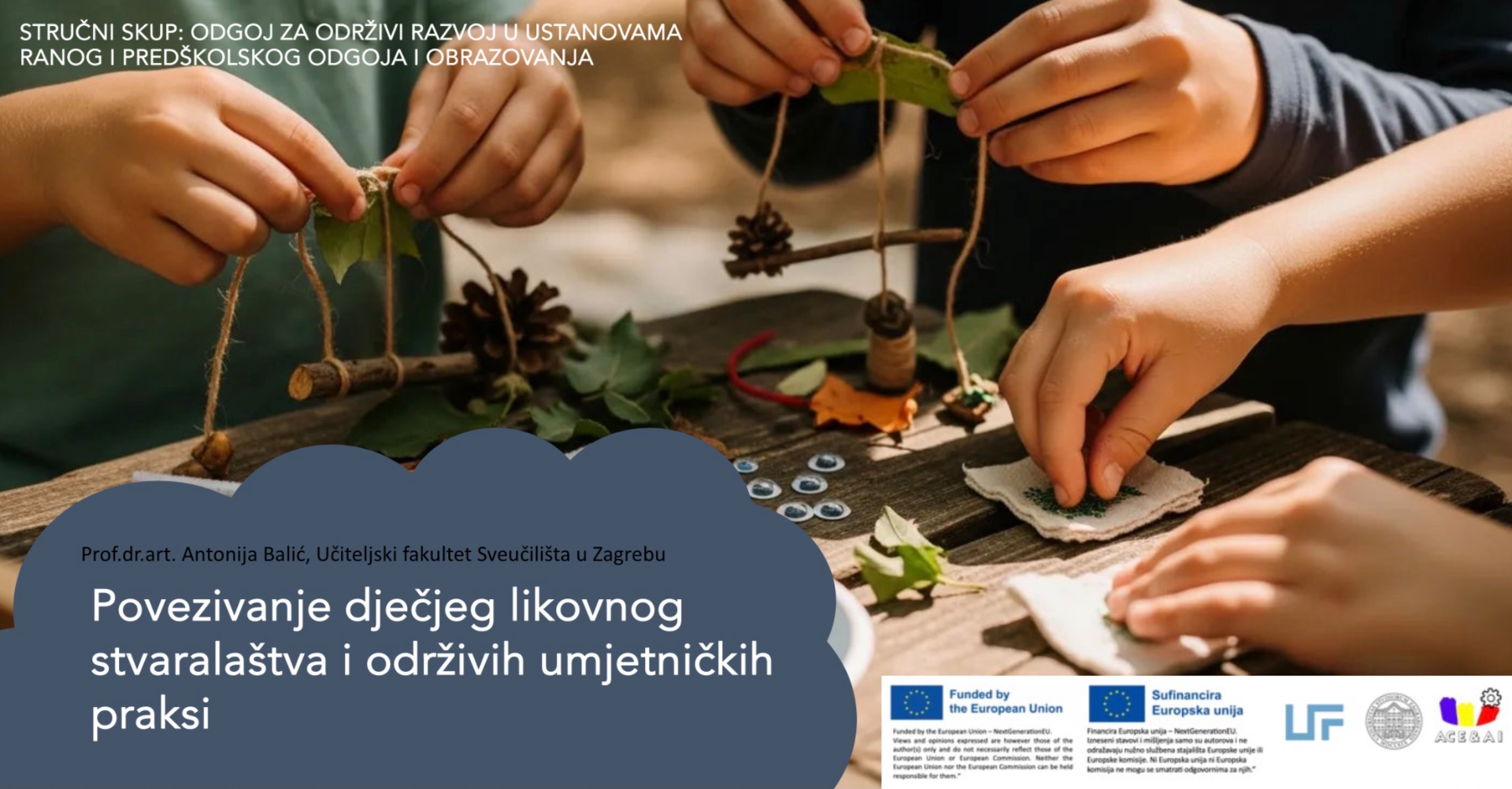 Balić, A. (2026). Povezivanje dječjeg likovnog stvaralaštva i održivih umjetničkih praksi. Mađužupanijski stručni skup "Odgoj za održivi razvoj u ustanovama ranog i predškolskog odgoja i obrazovanja". 4. ožujka 2026. Dječji vrtić "Slavuj", Školska 6, Objekt Rakitje, Novaki. AZOO.